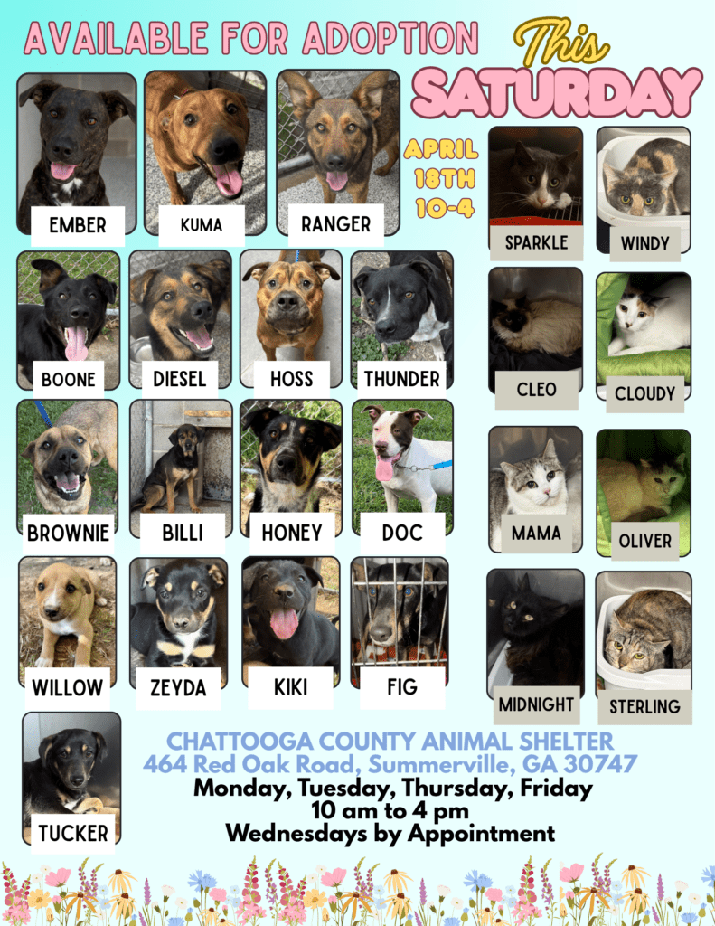 For more information, contact the Chattooga County Animal Shelter.
