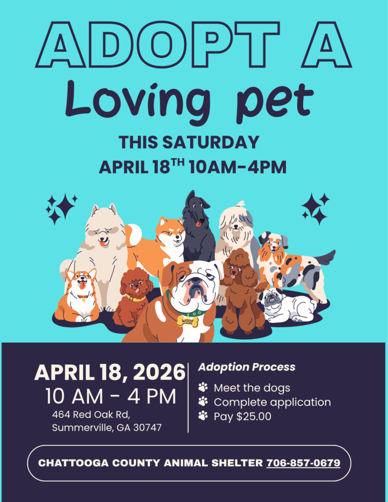 The Chattooga County Animal Shelter is inviting the community to come out and adopt a pet during a special adoption event this Saturday.