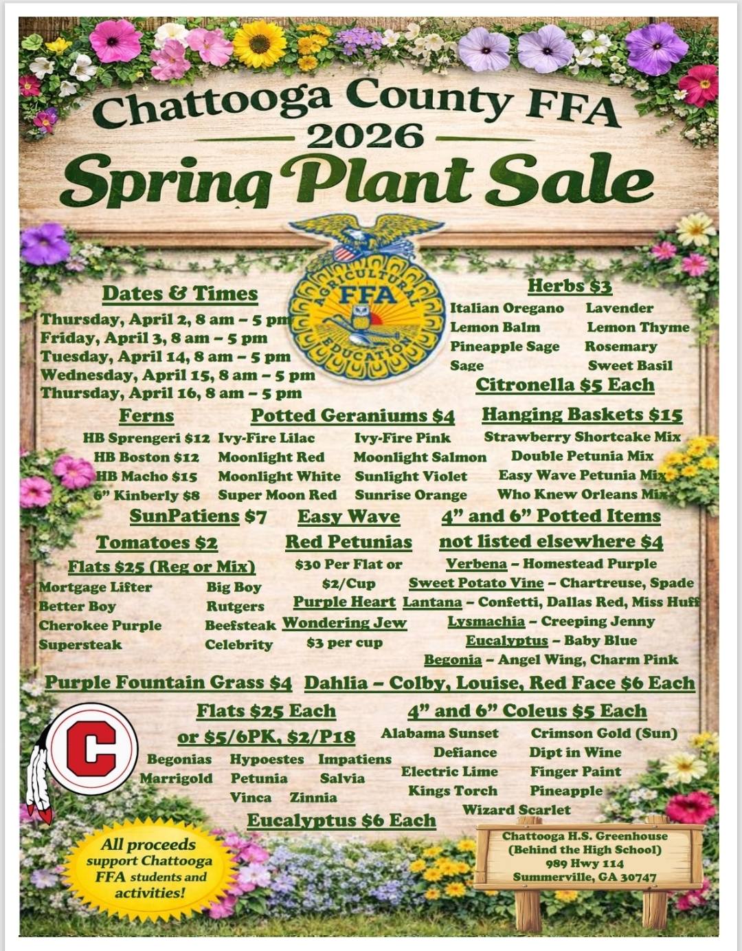 The annual plant sale is a major fundraiser for the Chattooga FFA program, helping support student activities, agricultural education, and leadership opportunities throughout the year. Each purchase directly benefits local students involved in FFA.