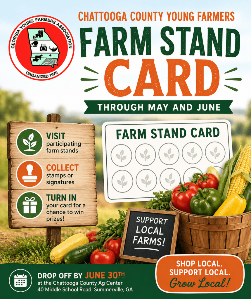 The Chattooga County Young Farmers Association is launching its first Farm Stand Card program during the months of May and June, giving residents a fun way to support local farmers and farm stands.